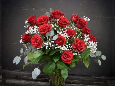 Red roses vase